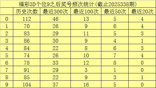 个位杀号:上期个位奖号为9,历史上个位奖号9共开出868次,最近100次个位奖号9出刻下,其下期号码0-9开出次数隔离为:奖号9开出16次,0开出13次,6开出12次,2开出11次,5开出10次,1、3、8开出9次,4开出8次,7开出3次。